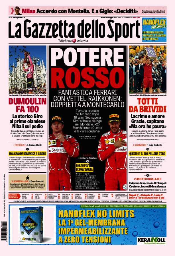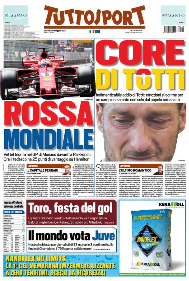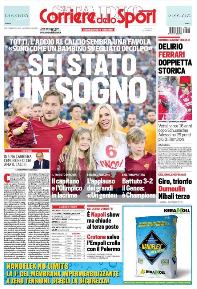 [caption id="attachment_20196" align="alignnone" width="614"] Gazzetta Dello Sport 29 Maggio 2017[/caption] [caption id="attachment_20197" align="alignnone" width="640"] Corriere Dello Sport 29 Maggio 2017[/caption] [caption id="attachment_20198" align="alignnone" width="629"] TuttoSport 29 Maggio 2017[/caption]