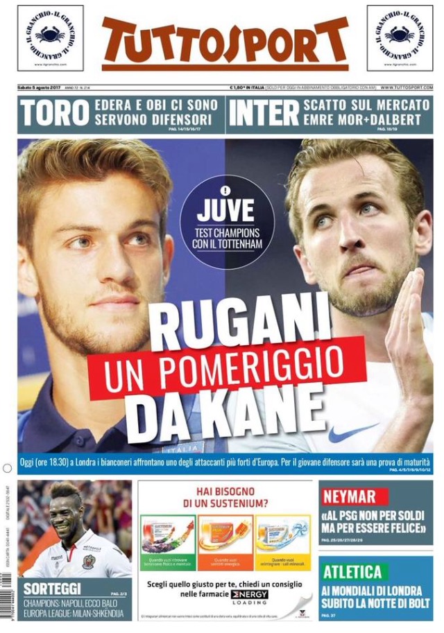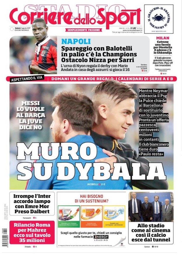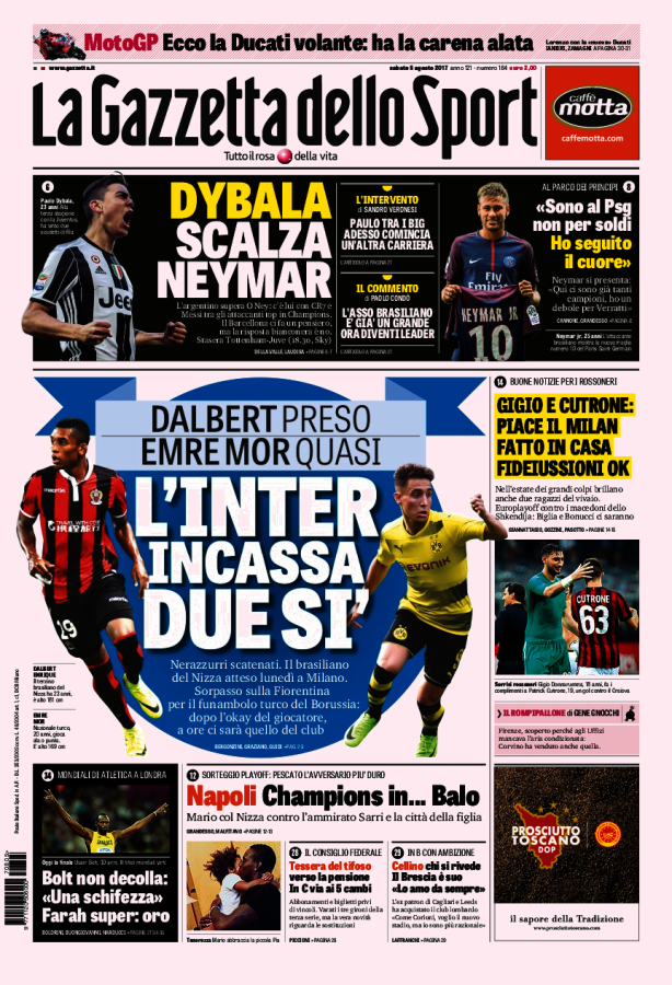 [caption id="attachment_25578" align="alignnone" width="614"] La Gazzetta Dello Sport 5 Agosto 2017[/caption] [caption id="attachment_25579" align="alignnone" width="624"] Corriere Dello Sport 5 Agosto 2017[/caption] [caption id="attachment_25580" align="alignnone" width="640"] TuttoSport 5 Agosto 2017[/caption] [caption id="attachment_25119" align="alignnone" width="300"] Sponsor Autoè[/caption]