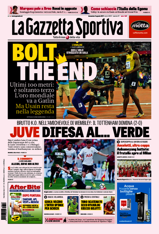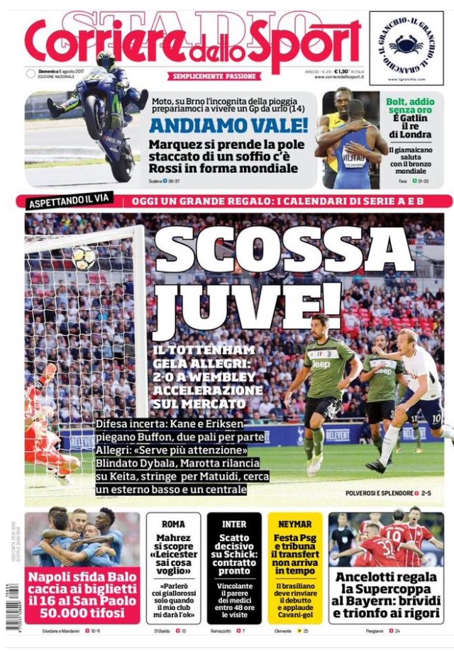 [caption id="attachment_25612" align="alignnone" width="614"] La Gazzetta Dello Sport 6 Agosto 2017[/caption] [caption id="attachment_25613" align="alignnone" width="640"] TuttoSport 6 Agosto 2017[/caption] [caption id="attachment_25614" align="alignnone" width="640"] Corriere Dello Sport 6 Agosto 2017[/caption] [caption id="attachment_25119" align="alignnone" width="300"] Sponsor Autoè[/caption]
