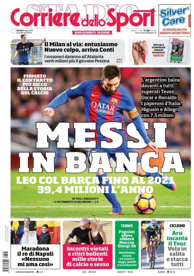 Le prime pagine dei principali quotidiani sportivi – 6 Luglio 2017