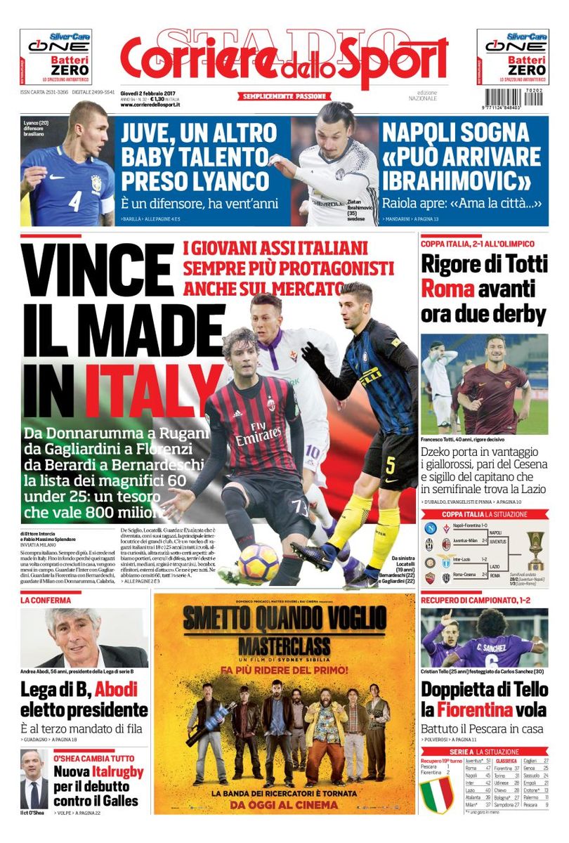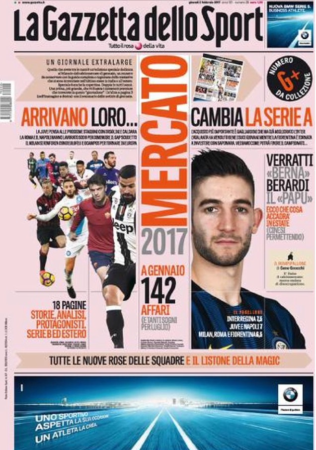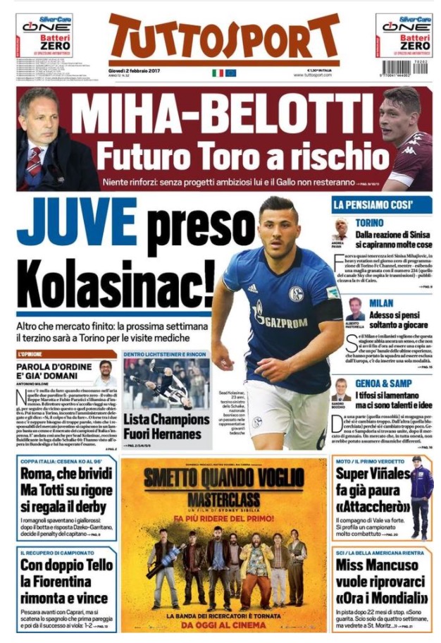 [caption id="attachment_13629" align="alignnone" width="810"] Corriere Dello Sport 2 Febbraio 2017[/caption] [caption id="attachment_13628" align="alignnone" width="626"] TuttoSport 2 Febbraio 2017[/caption] [caption id="attachment_13627" align="alignnone" width="636"] Gazzetta Dello Sport 2 Febbraio 2017[/caption]