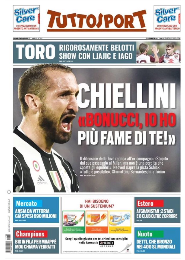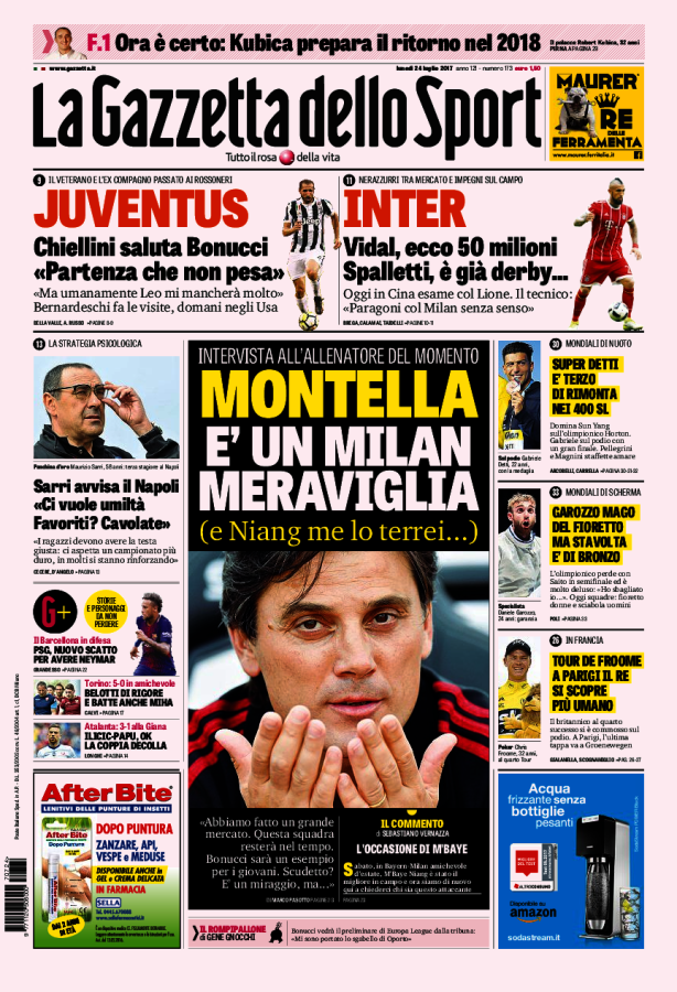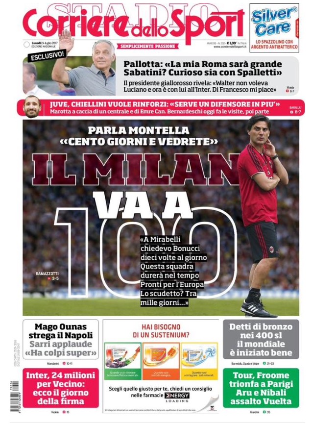 [caption id="attachment_24524" align="alignnone" width="640"] TuttoSport 24 Luglio 2017[/caption] [caption id="attachment_24525" align="alignnone" width="637"] Corriere Dello Sport 24 Luglio 2017[/caption] [caption id="attachment_24526" align="alignnone" width="614"] Gazzetta Dello Sport 24 Luglio 2017[/caption]
