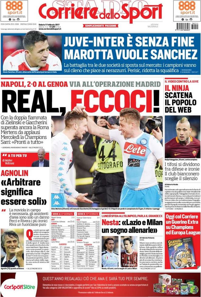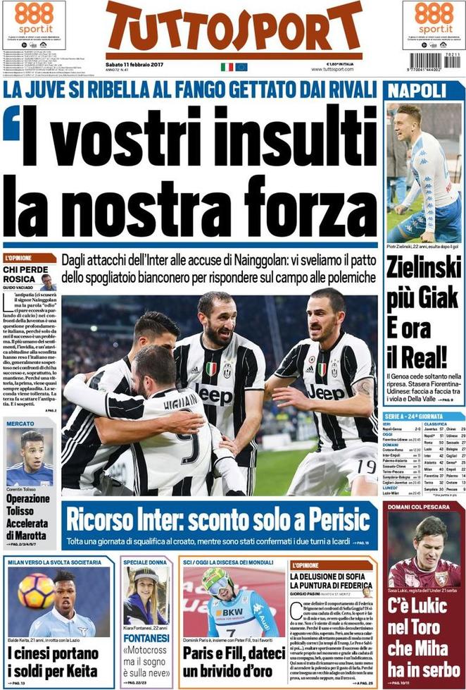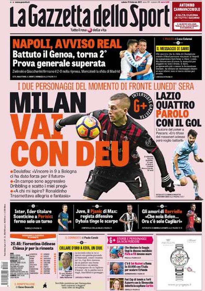 [caption id="attachment_14075" align="aligncenter" width="662"] TuttoSport 11 Febbraio 2017[/caption] [caption id="attachment_14077" align="aligncenter" width="662"] Corriere Dello Sport 11 Febbraio 2017[/caption] [caption id="attachment_14079" align="aligncenter" width="662"] Gazzetta Dello Sport 11 Febbraio 2017[/caption]