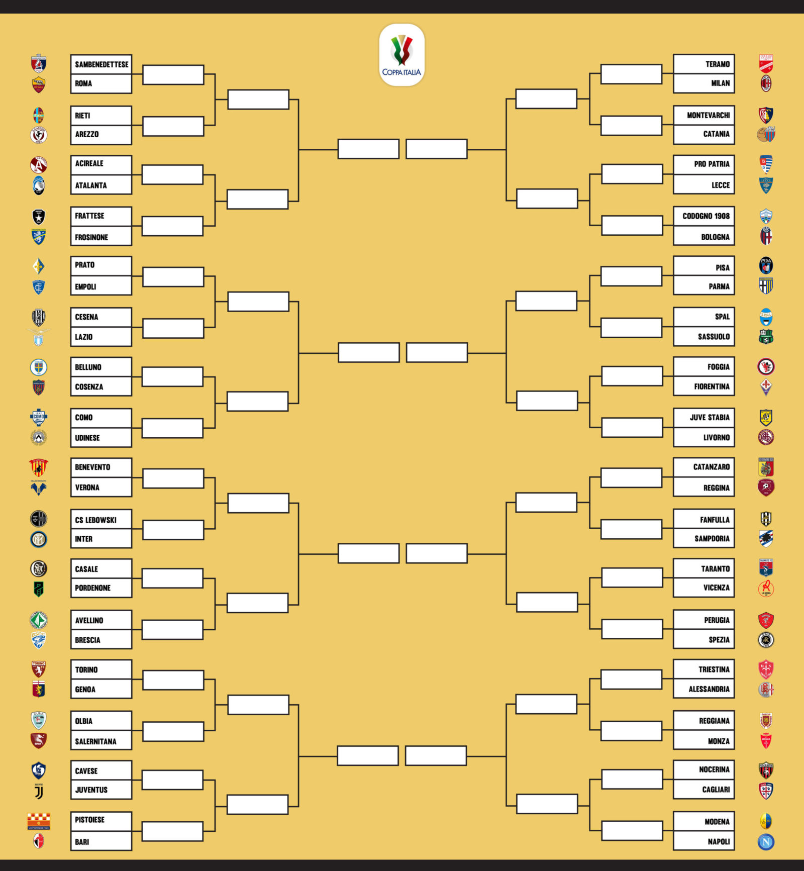 Il secondo modello, sul quale è basato il seguente tabellone, è già frutto di uno sforzo di “mediazione preventiva”. Le “big” entrano ai trentaduesimi di finale, quindi nei fatti giocano una sola partita in più rispetto alla formula attuale (giocano infatti due turni in più, ma la semifinale nel nuovo modello sarebbe a gara secca e quindi il totale è solo un match in più). Non c’è nessun valido motivo per essere contrari. Certo, il cammino da fare per le “piccole” per arrivarci è lungo, ben 6 turni da superare, o 4 per le squadre di D, ma del resto è un modello davvero molto simile a quello inglese, dove infatti il Marine AFC ha dovuto superare proprio 6 turni prima di imbattersi nel Tottenham.