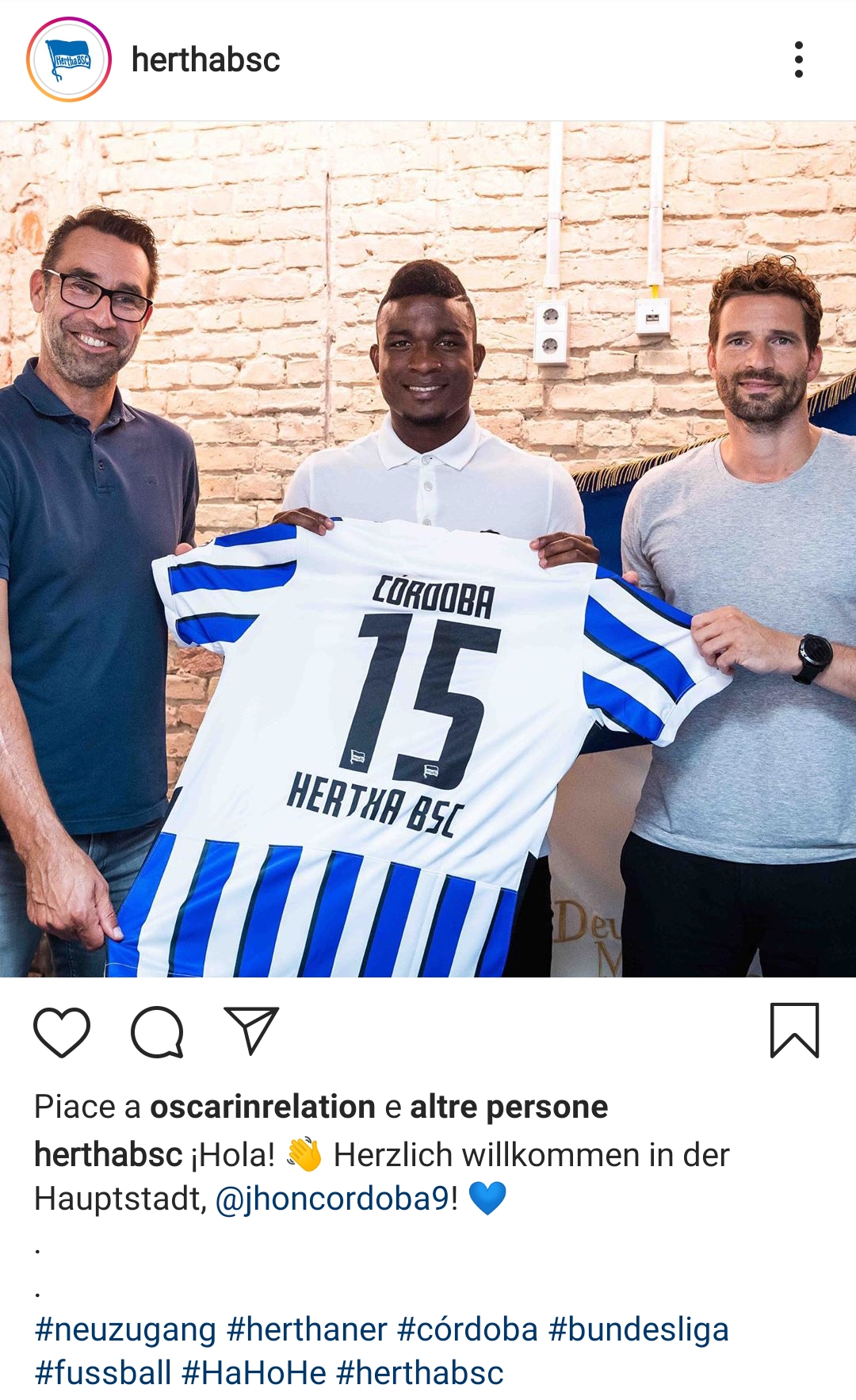 L’Hertha Berlino ha ufficializzato l’acquisto di un nuovo attaccante dal Colonia. Si tratta dell’attaccante colombiano Jhon Cordoba classe 1993 reduce da un’ottima stagione in campo realizzativo.