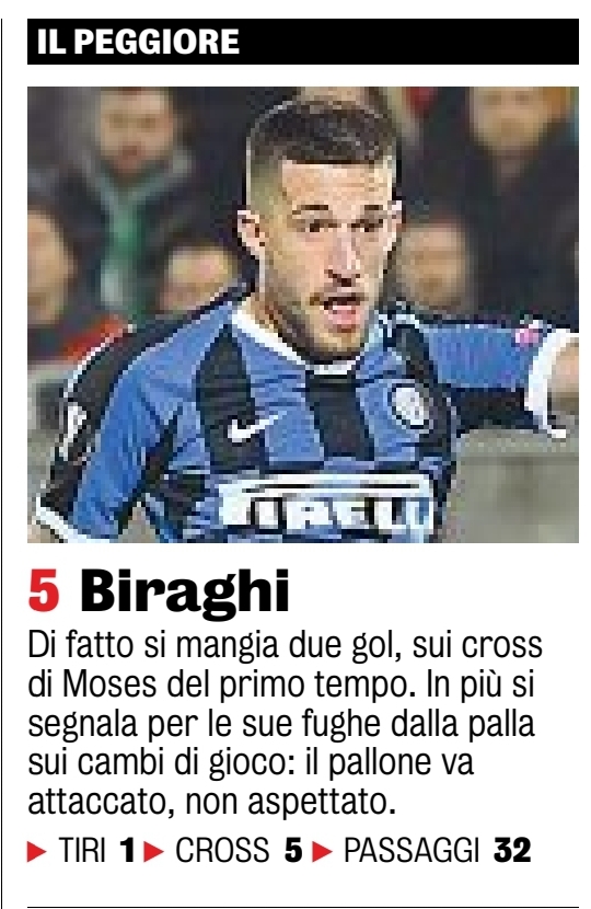 L’Inter vince in Europa League ma Biraghi non può sorridere fino in fondo, infatti secondo la Gazzetta dello Sport è il peggiore in campo nella partita di ieri. Ecco il giudizio del quotidiano che dà 5 come voto al terzino sinistro di proprietà della Fiorentina: