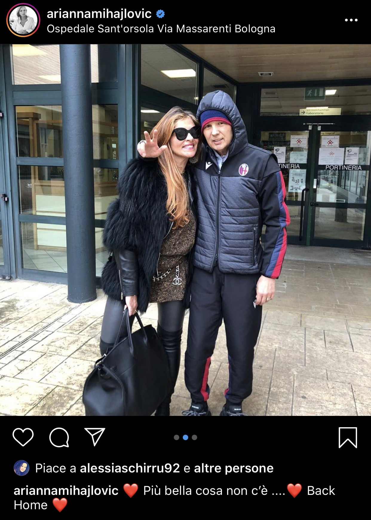 L’allenatore del Bologna Sinisa Mihajlovic torna a casa. L’ex calciatore serbo era ricoverato all’ospedale di Bologna per un ciclo di cure ed oggi è stato dimesso. Ecco il post di sua moglie Arianna su Instagram: