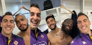 Nello spogliatoio della Fiorentina a Napoli Rosati festeggia con Nico Gonzalez, Ikonè e Cabral