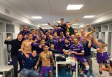 Nello spogliatoio della Fiorentina si festeggia la vittoria contro la Juventus, festa da 0-3