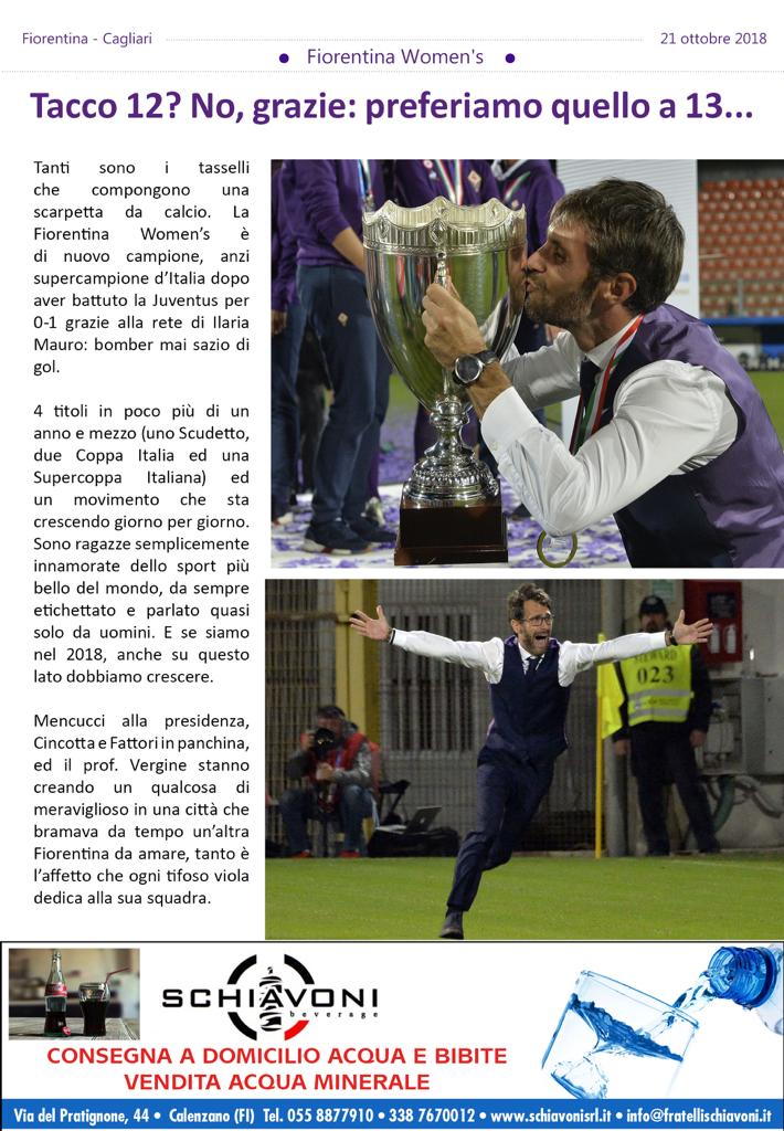 Oggi allo stadio come di consueto verrà distribuito gratuitamente I’Tifoso viola, all’interno gli approfondimenti sulla partita contro il Cagliari, uno speciale sulla vittoria della Fiorentina Women’s e molto altro! Presente anche Labaroviola con delle foto e gli articoli del nostro Gabriele Caldieron. Questa un’anteprima: