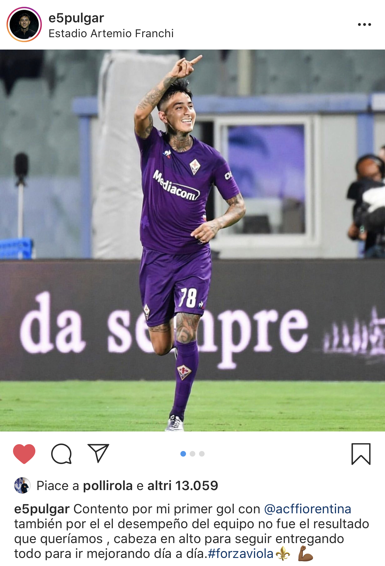 Queste le parole di Erick Pulgar in un post di Instagram dopo la partita di ieri: “Sono contento per il mio primo goal con la Fiorentina ma anche per la prestazione della squadra. Non è stato il risultato che speravamo, ma testa in alto per continuare a migliore giorno per giorno”.