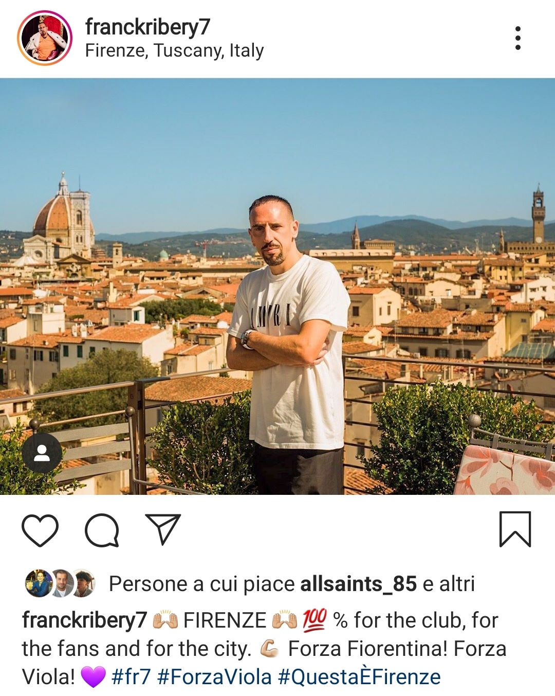 Questo il post di Franck Ribery su Instagram che vede il fenomeno francese dominare su Firenze