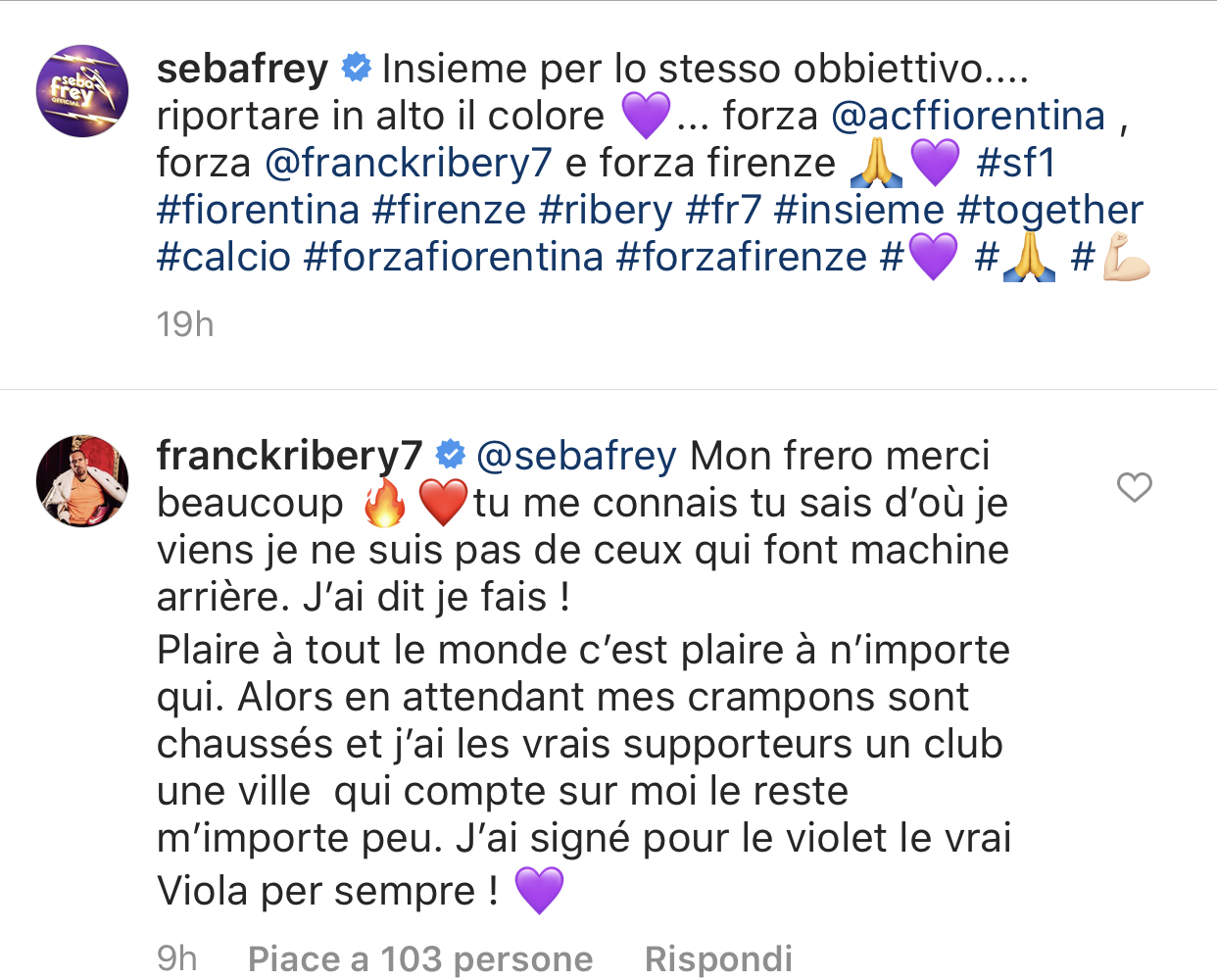 Franck Ribery ha prontamente risposto in un post Instagram di Sebastien Frey.