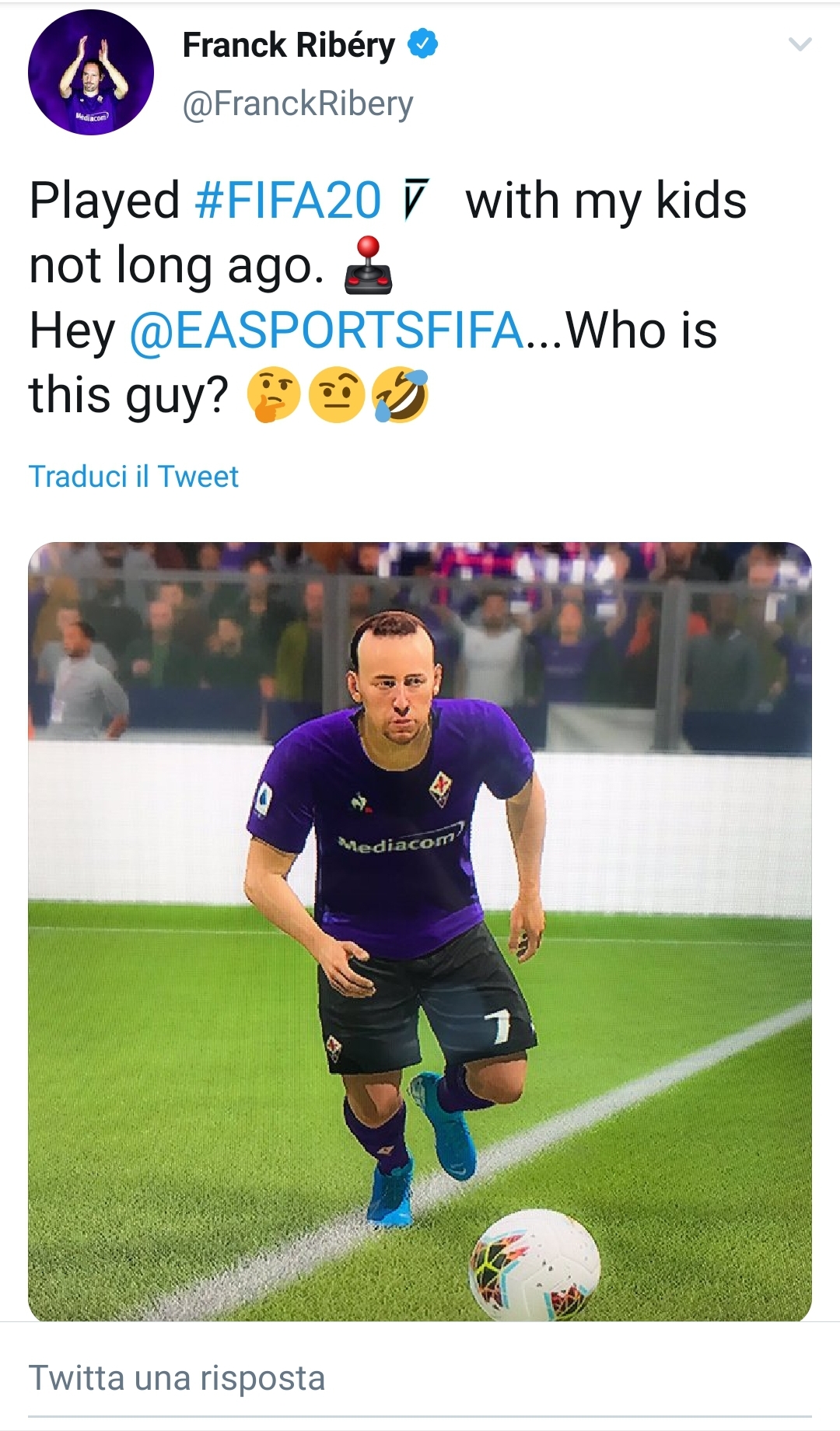 Sfogo simpatico di Franck Ribery su Twitter che attraverso il proprio profilo si interroga simpaticamente sul famoso gioco calcistico FIFA 20 che lo ha reso praticamente irriconoscibile, questo il tweet del campione francese della Fiorentina
