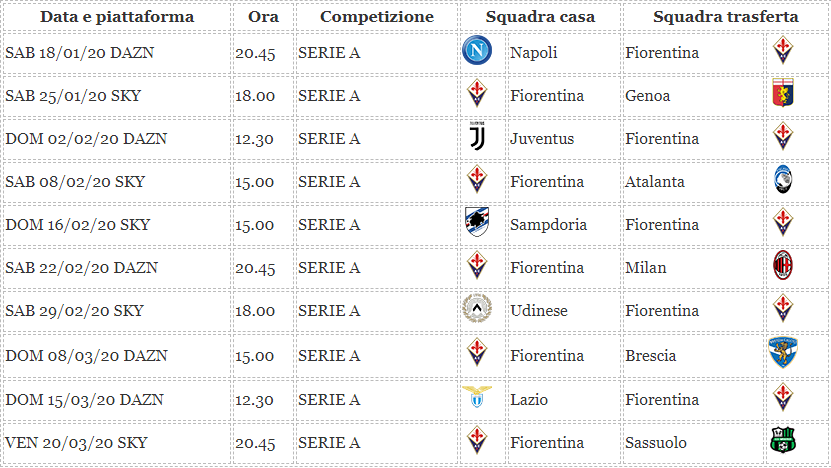 La Lega ha annunciato gli anticipi ed i posticipi per le prossime 10 gare di Serie A. Ecco quando verranno giocate quelle della Fiorentina e dove si potranno vedere senza dover andare allo stadio. Sono ben quattro su dieci i match che si potranno vedere in esclusiva su DAZN