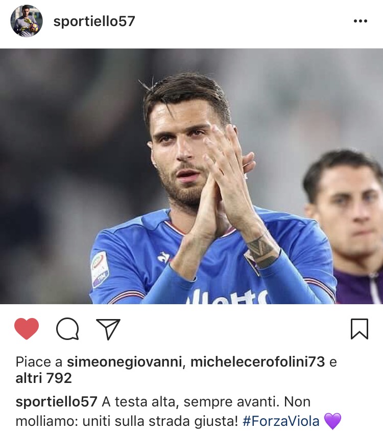 Il numero uno Viola Marco Sportiello, si è affidato ai social per caricare compagni e tifosi dopo la sconfitta di ieri sera all'Allianz Stadium. Queste le sue parole su Instagram...