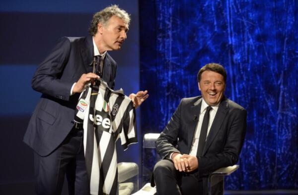 Giletti gli regala la maglia della Juventus ma Renzi la rifiuta: "No grazie non la prendo"