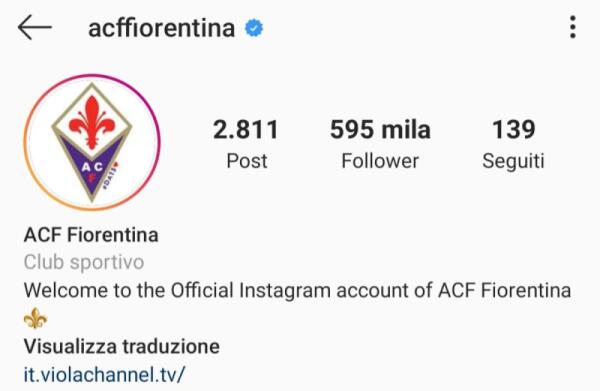 Fiorentina, molto bene sui social, è la sesta squadra più seguita su Instagram