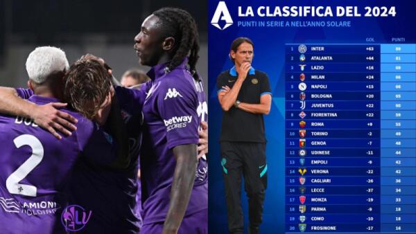 La Fiorentina è ottava nella classifica dei punti ottenuti in Serie A nel 2024, a -1 dalla Juventus