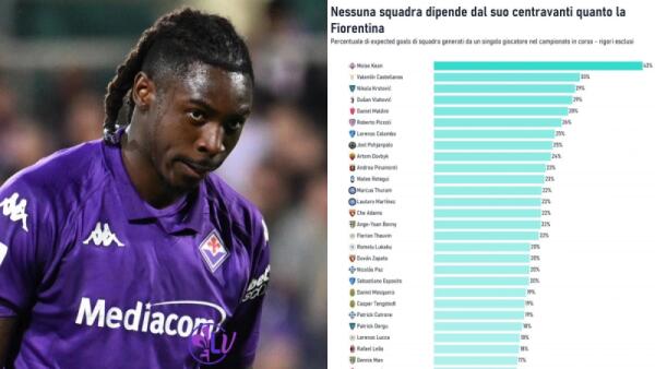 Nessuna squadra dipende dal centravanti quanto la Fiorentina: Kean produce il 43% delle possibilità di gol