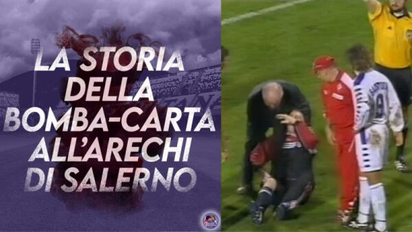 La Fiorentina voleva aiutare la Salernitana, i suoi tifosi buttarono una bomba in campo. Viola fuori