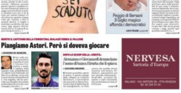 Il quotidiano La Verità sbotta: "Piangiamo Astori ma si doveva giocare'"