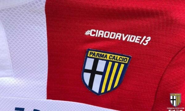 Il Parma omaggia Astori, sulla maglia, sopra lo scudetto, il suo ricordo