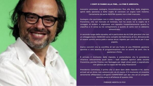 "Fiorentina ultima e senza identità, esempio di incompetenza avidità ed arroganza"