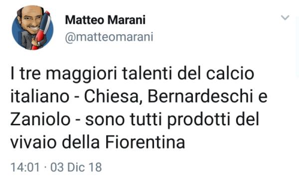 Marani (Sky Sport): "I più forti giovani talenti italiani vengono dal vivaio della Fiorentina"