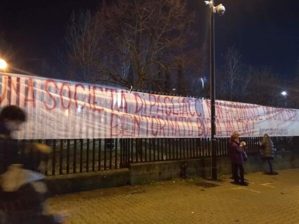 Lo striscione della Fiesole: "Una società di pagliacci non riconosce un uomo vero. Bentornato Borja Valero!".