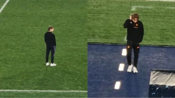 Bove torna in campo dopo la fine, è solo sul terreno di gioco dell'Olimpico. La scena emozionante