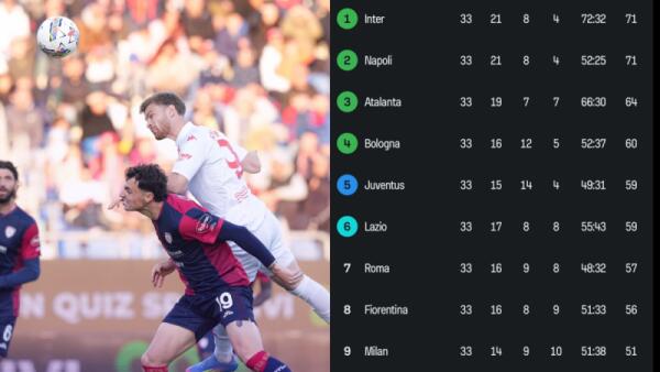 Con la vittoria a Cagliari la Fiorentina allunga a +5 sul Milan, il 4° posto adesso è 4 punti di distanza