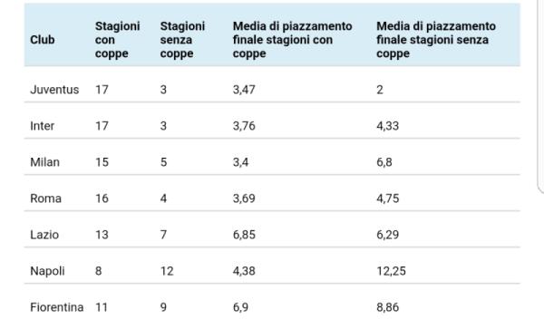 Senza le Coppe la Fiorentina va meglio in campionato? I dati dicono di no. Anche per tutte le altre italiane
