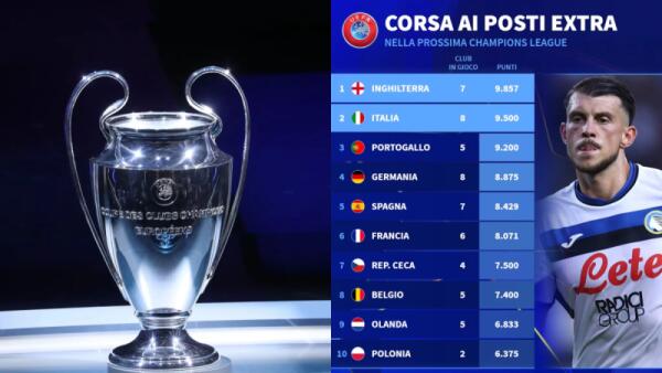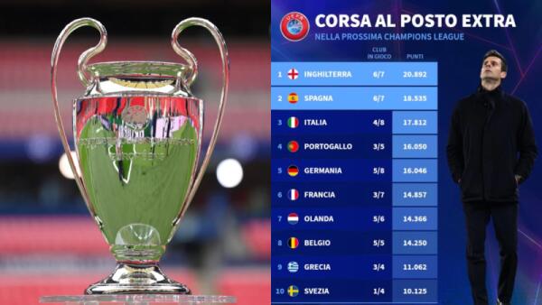 Se la stagione finisse ora sarebbero 5 le squadre italiane in Champions, l'Italia è seconda nel ranking