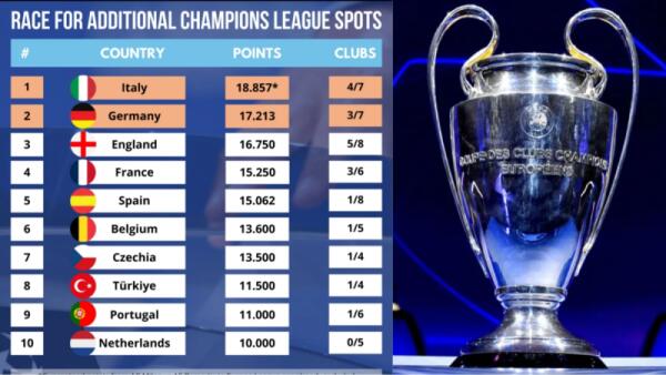 Italia ancora prima nel ranking Uefa, ma la Germania si avvicina pericolosamente, Spagna fuori dalla Top2