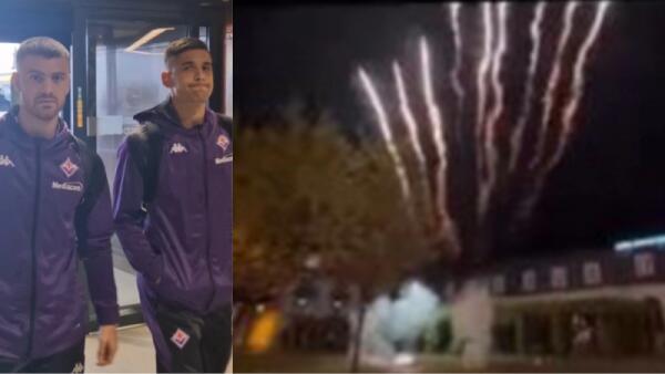 I tifosi del Club Brugge fanno i fuochi d'artificio davanti l'albergo della Fiorentina per non farli dormire