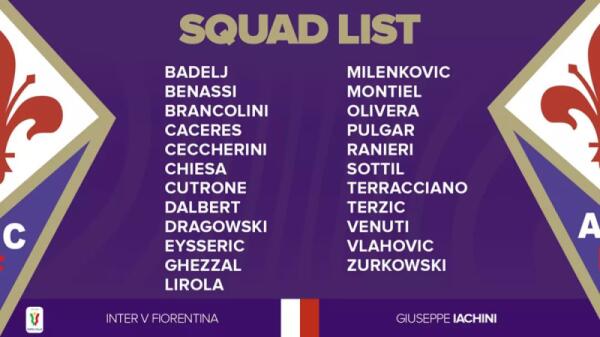 ACF: ecco la rosa dei 23 convocati dal tecnico Iachini per la gara con l'Inter. Il comunicato