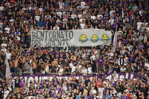 Striscione ironico "Bentornato Presidente" poi il coro "Della Valle vattene" ma la tribuna fischia la Fiesole