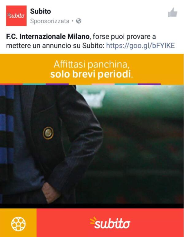 Anche la pagina Facebook di Subito prende in giro l'Inter con una foto particolare