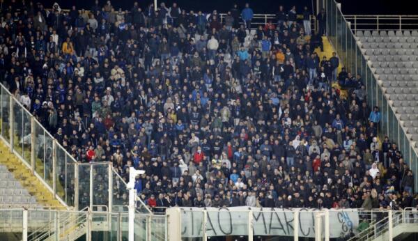 La Curva dell'Inter omaggia il tifoso viola scomparso. Niente bandiere, nè stendardi, nè cori per tutta la gara