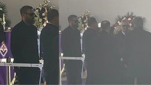 L'allenatore della Roma De Rossi arriva alla camera ardente per l'ultimo saluto a Barone. Anche Iachini presente