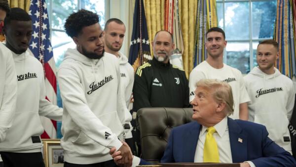 Scena surreale alla Casa Bianca: Trump parla di guerra e trans con la Juve alle spalle