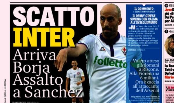 La Gazzetta Dello Sport titola: "Scatto Inter, arriva Borja" - 7 Luglio 2017