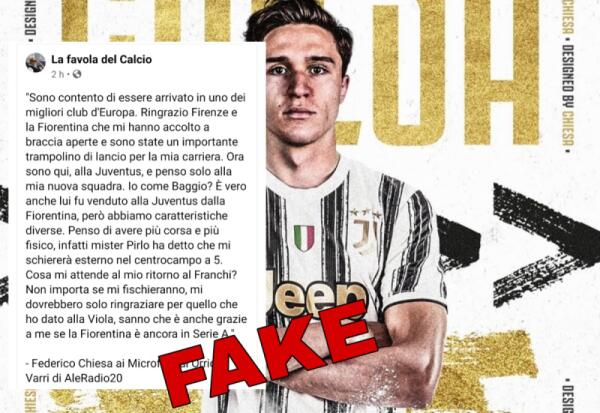 Chiesa e le parole mai dette che fanno il giro dei social. È fake il virgolettato sulla Fiorentina