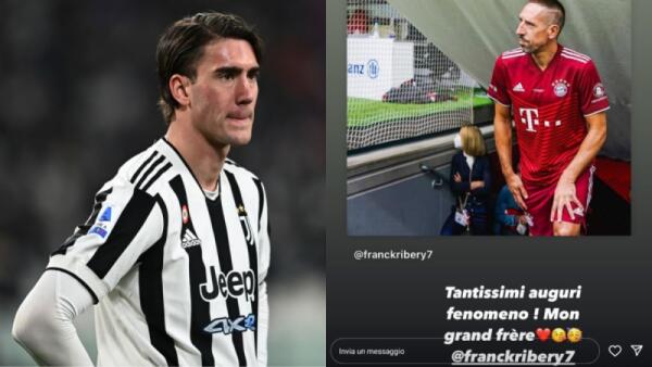 Pur di non mettere una foto della Fiorentina, Vlahovic fa gli auguri a Ribery con una foto del Bayern