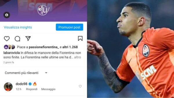 Dodo scrive a Labaro Viola su Instagram, gioia dopo la notizia dell'accordo tra Fiorentina e Shakhtar