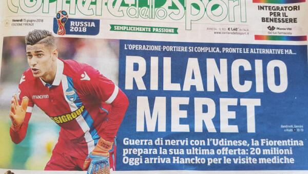 Stadio, l'Udinese non vuole fare sconti per Meret, la Fiorentina offre 20 milioni