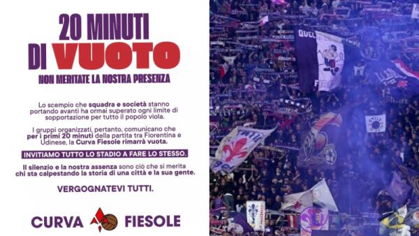 Curva Fiesole stufa: “20 minuti di vuoto contro l’Udinese. Vergognatevi tutti"