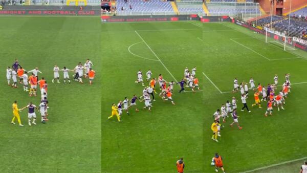 Video, Fiorentina festa con i tifosi viola a Marassi, e Italiano prende per mano i giocatori