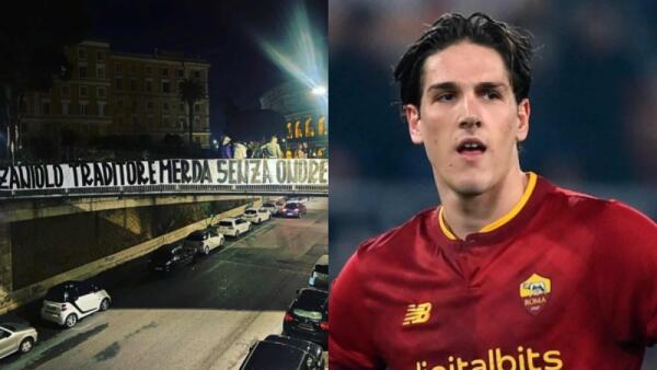 I tifosi della Roma si scagliano contro Zaniolo, lo striscione: "Traditore, m***a senza onore!"